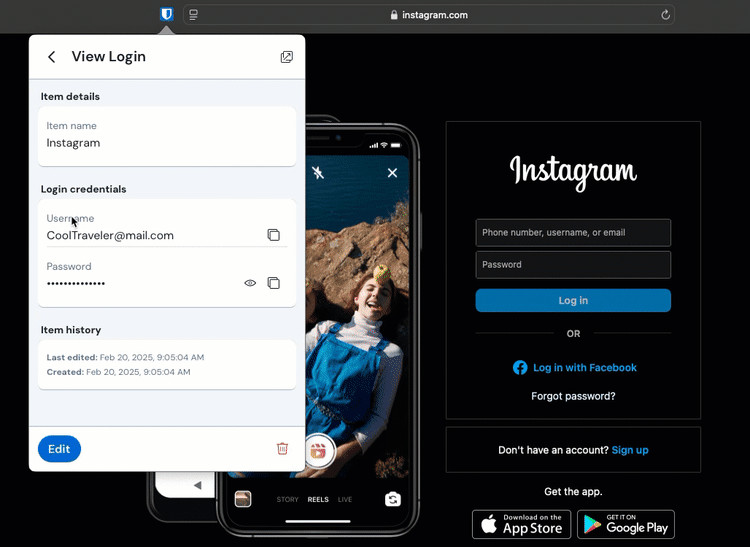 Use the inline autofill menu to quickly input login credentials, passkeys, and TOTP codes from your Bitwarden vault.