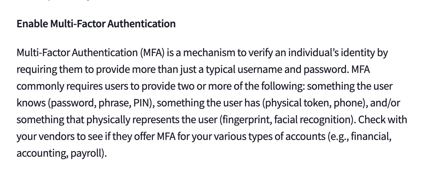 2FA/MFAは上記のリンク先のPDFで言及されているが、多くのアドバイスがあるわけではないので、見つけるには検索が必要である。